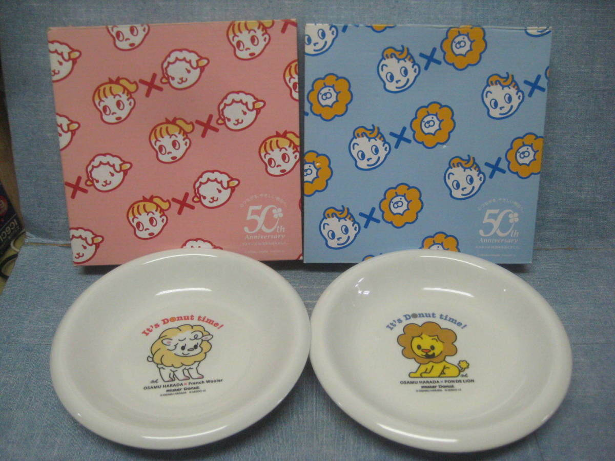 - ☆希少 未使用品 ミスタードーナツ ダスキン50周年プレート OSAMU HARADA ポンデライオン フレンチウーラー 絵皿 2枚セット ☆