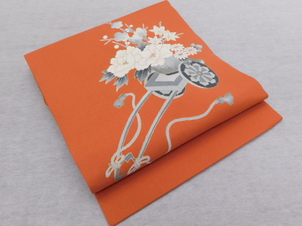 > 〔楽布〕P3858 手描き友禅染め名古屋帯 未使用仕立て上がり品 lc
