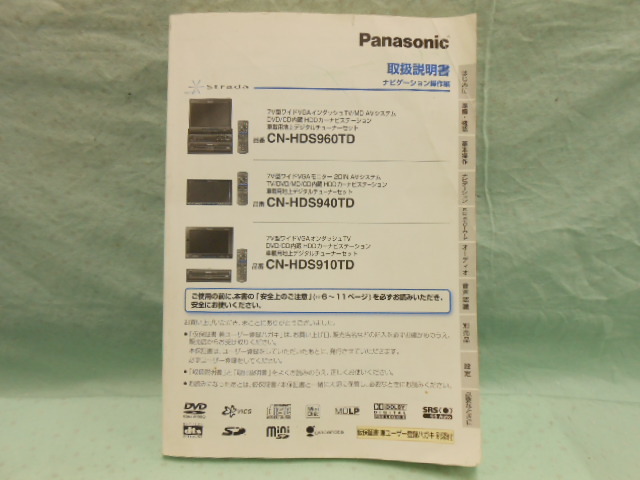 - O-426 ☆ パナソニック 取扱説明書 ☆ CN-HDS960TD/940TD/910TD ナビゲーション操作編 中古【送料¥210~】