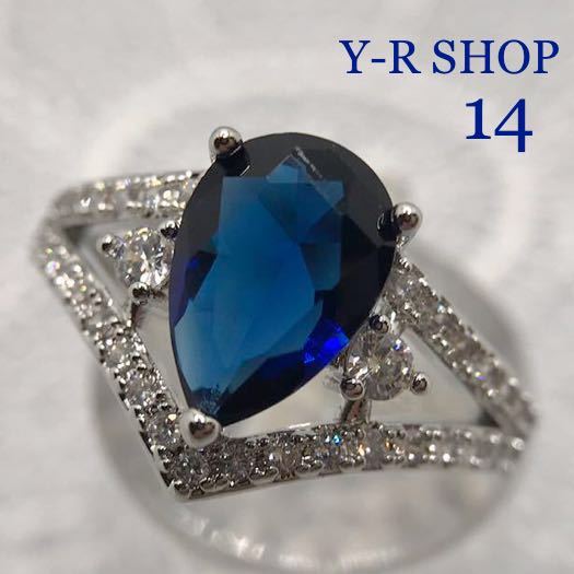 > ★14号★サファイアとホワイトトパーズのエレガントリング★レディース指輪シルバー 925刻印カラーストーンアクセサリーY-RSHOP cz