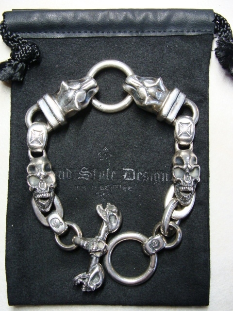 > Loud Style Design LSD ラウド スタイル デザイン ◇ 高蝶 2 パンサー 2 スカル ヘッド T バー ブレスレット SV シルバー 925