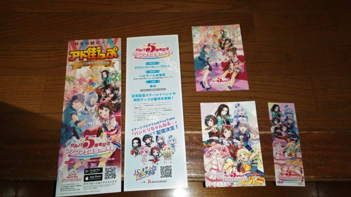 > 秋葉原 ガールズバンドパーティ 5周年記念 スタンプカード 非売品 ポストカード2種 クリア栞 未使用スタンプカード含む 合計5点