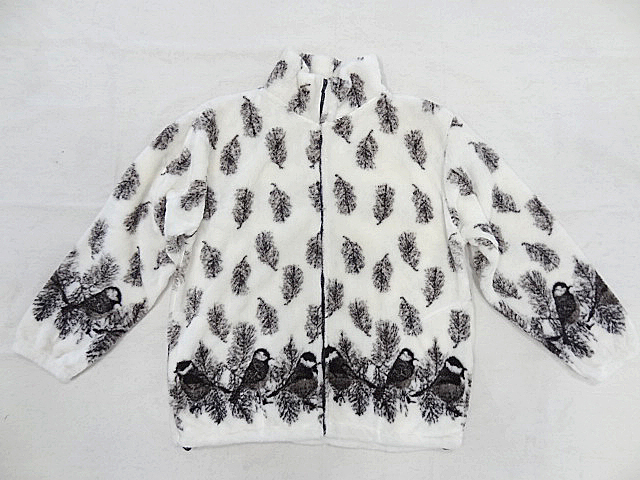 - ビンテージ BLACK MOUNTAIN ブラック マウンテン USA製 フリース ジャケット モノクロ モノトーン 白 黒 カラー 総柄 プリント レア ファー