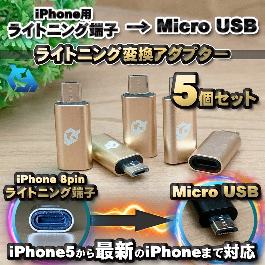 - iPhone用 ライトニング ケーブル→ マイクロUSB 端子 に 変換アダプター x5個 【ゴールド】