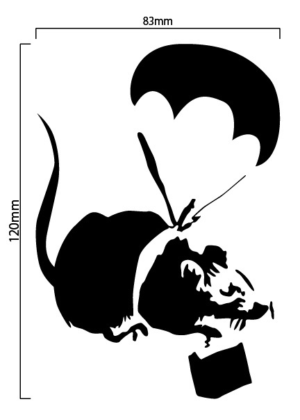> 自作カッティングステッカー バンクシー Parachuting rat / パラシュートネズミ 83×120mm ネコポス対応可能 ステッカー商品同梱可 [S-9]