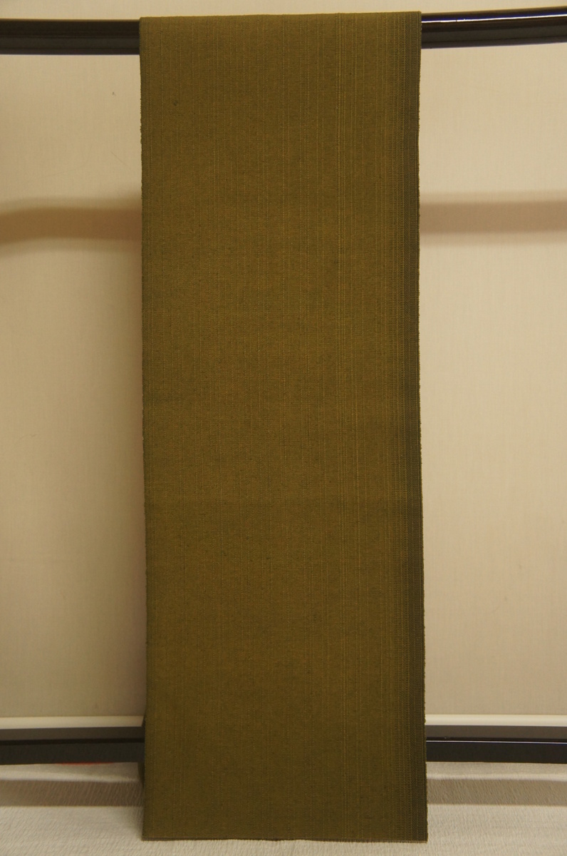 - 特選別誂え紬地媚茶色ぼかし縦縞地紋未着用名古屋帯N13215