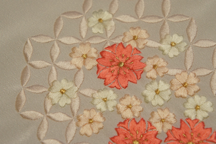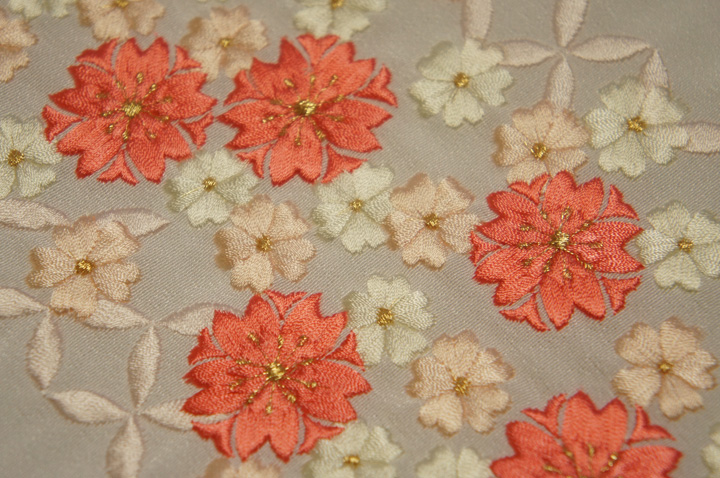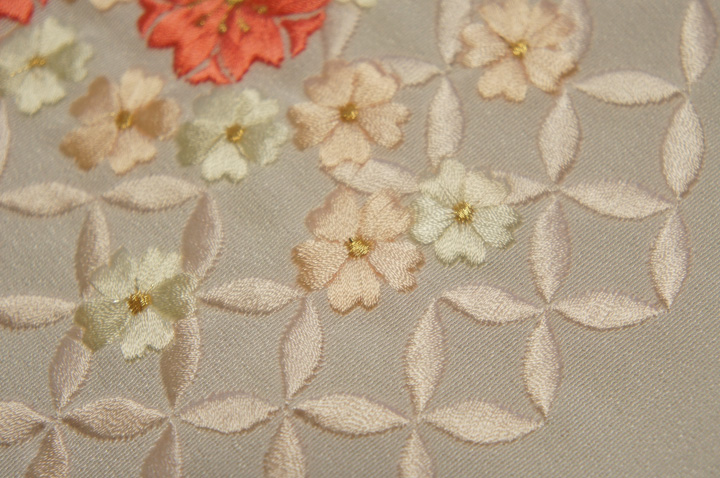 - 特選新品『和想庵』白地刺繍七宝花模様色入半衿[E10366]
