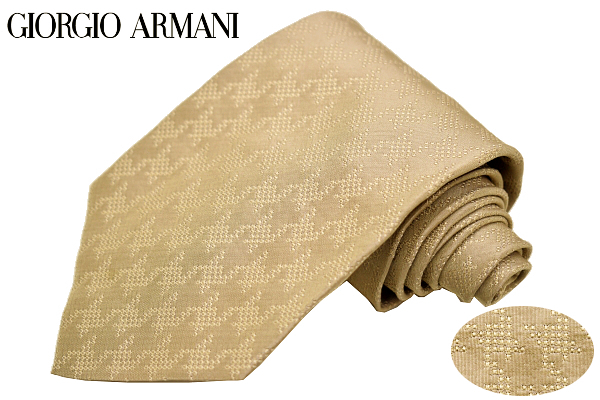 - N-2348★送料無料★超美品★GIORGIO ARMANI ジョルジオアルマーニ★正規品 イタリア製 ベージュ レジメンタル 織り生地 シルクネクタイ