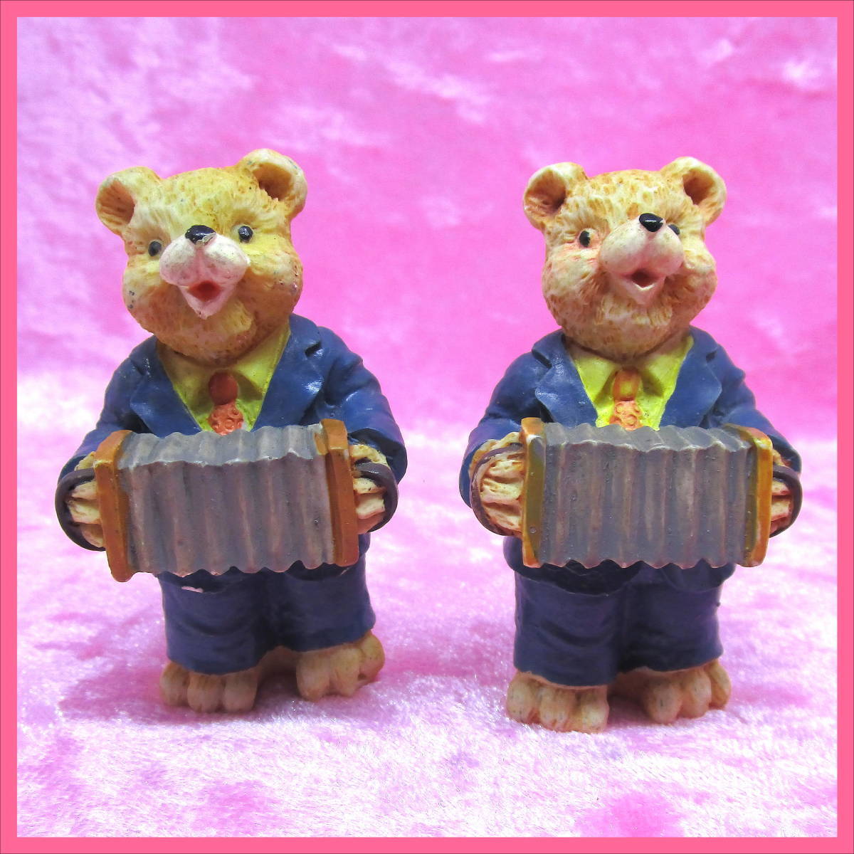 > ガーデン マスコット 置物 ミニチュア 陶器製 ★ 熊のオーケストラ (アコーディオンVer.) / 2点 Used