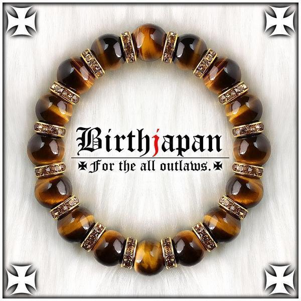 - 12mm/ロンデル×虎目石タイガーアイ数珠ブレスレット/オラオラ系