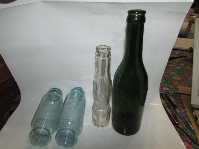 - 会津若松(旧家・蔵出し)(古い時代の気泡沢山の味のある・浮き球2個・Juuce瓶・緑瓶など4点 )貴重・珍品
