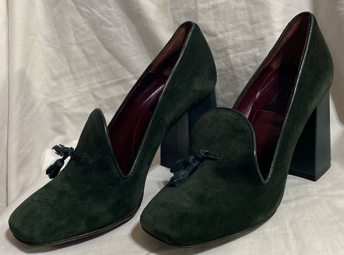 - 本皮革ハイヒールパンプス 38サイズ 24cm相当 ローガン スエード調モスグリーン系 12.100円品未使用品