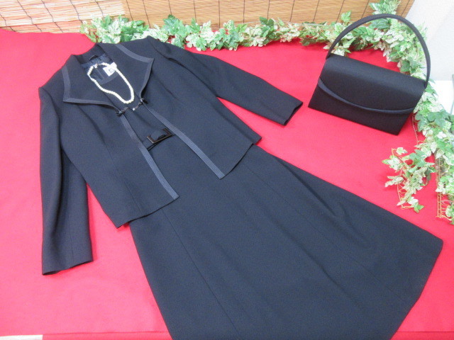 - 《8Y6715》middow 喪服 7号 ブラックフォーマル ステッチ美デザイン 4点セット ジャケット/ワンピース/バッグ/ネックレス 冠婚葬祭