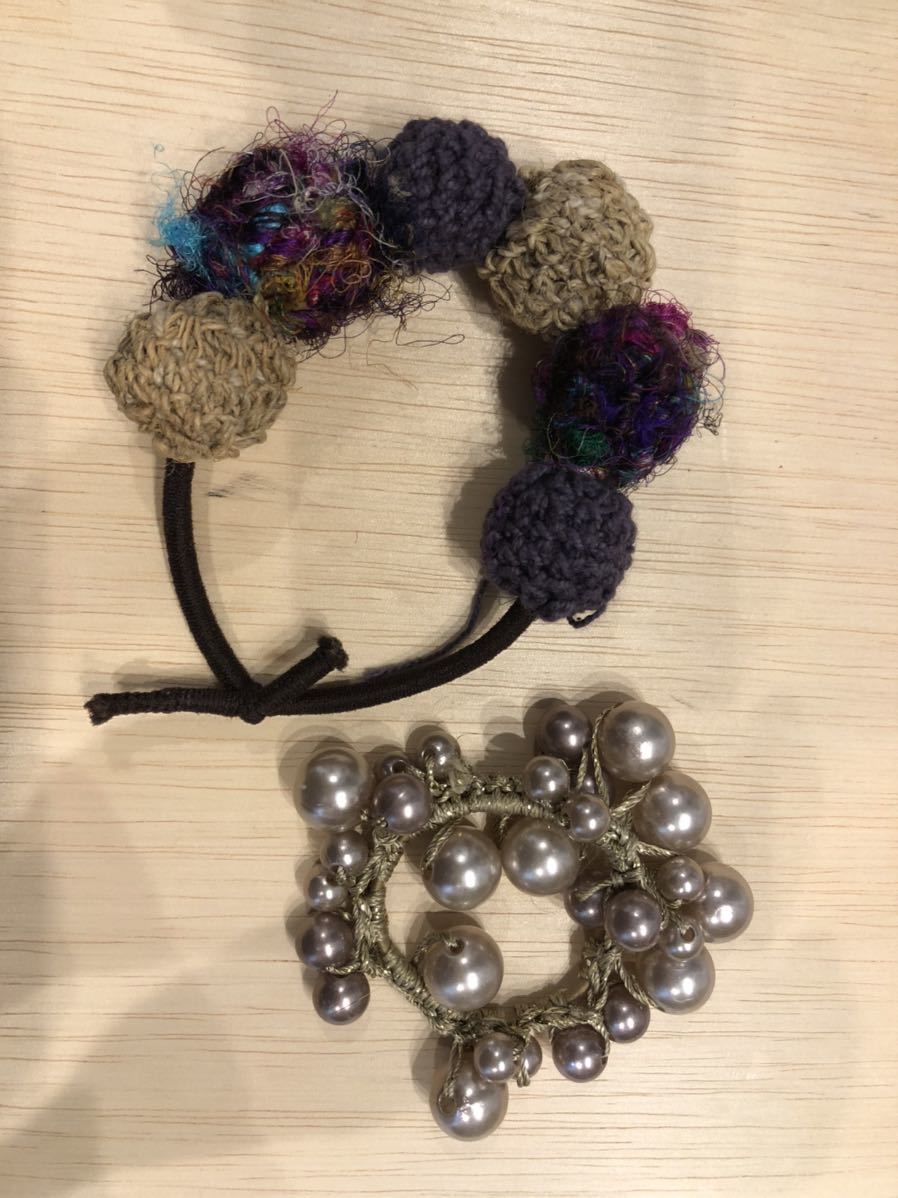 - ヘアゴム2個 パールビーズ エスニック 麻絹ボール