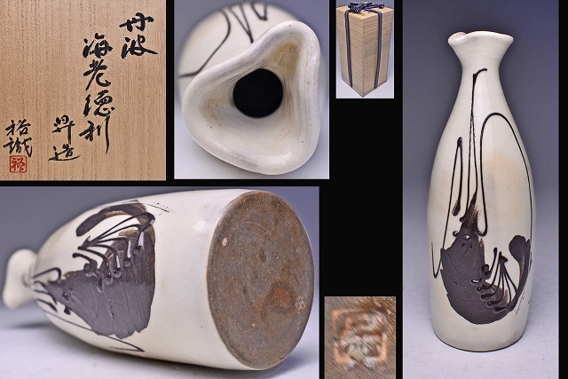 - 大上昇 ★ 白丹波海老徳利 ★ 大上裕 識箱 ★ 上作 ★ イッチン 筒描 ★ 丹波立杭焼 の 名工 ★ イッチンの海老の勢い 素晴らしい