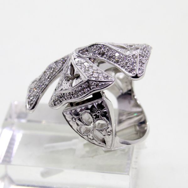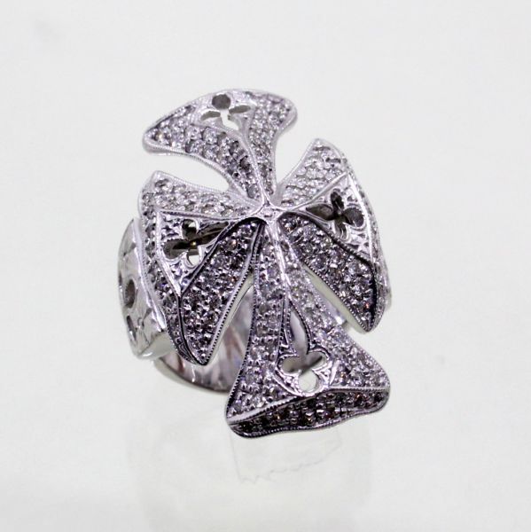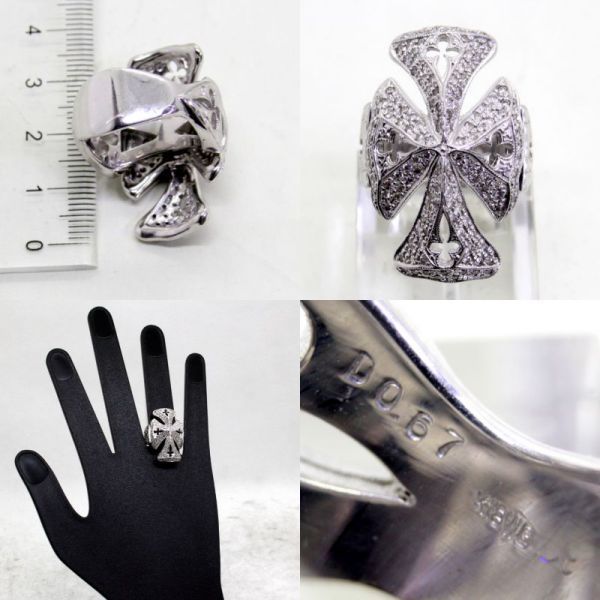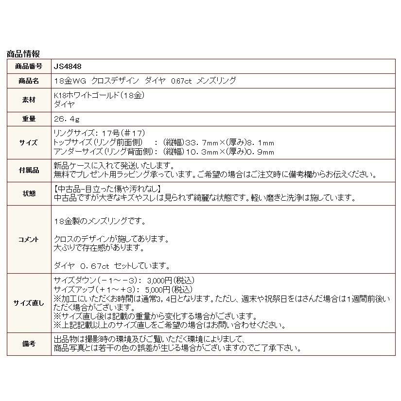 - ◎中古美品◎18金WG クロスデザイン ダイヤ 0.67ct メンズリング 17号