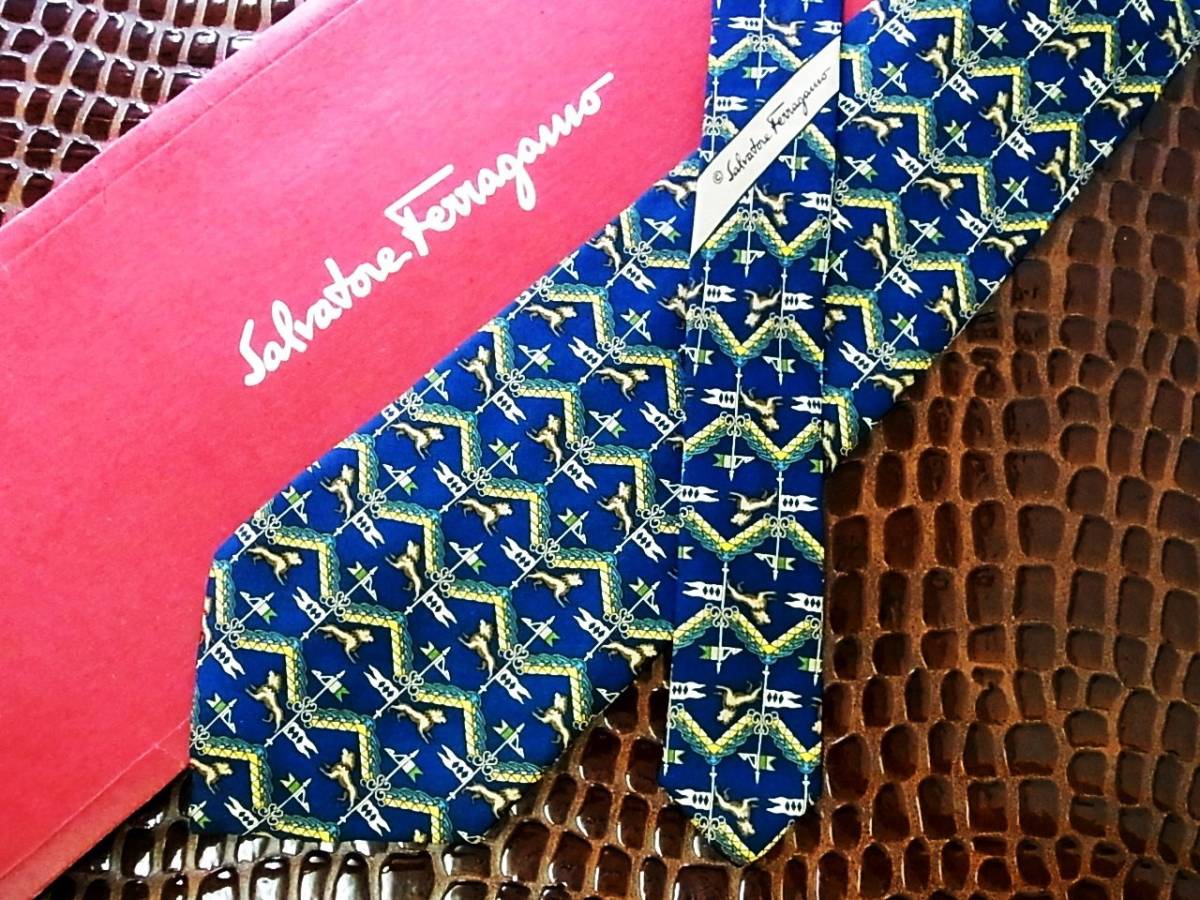 - E0340R●美品●フェラガモ【犬・旗】ネクタイ