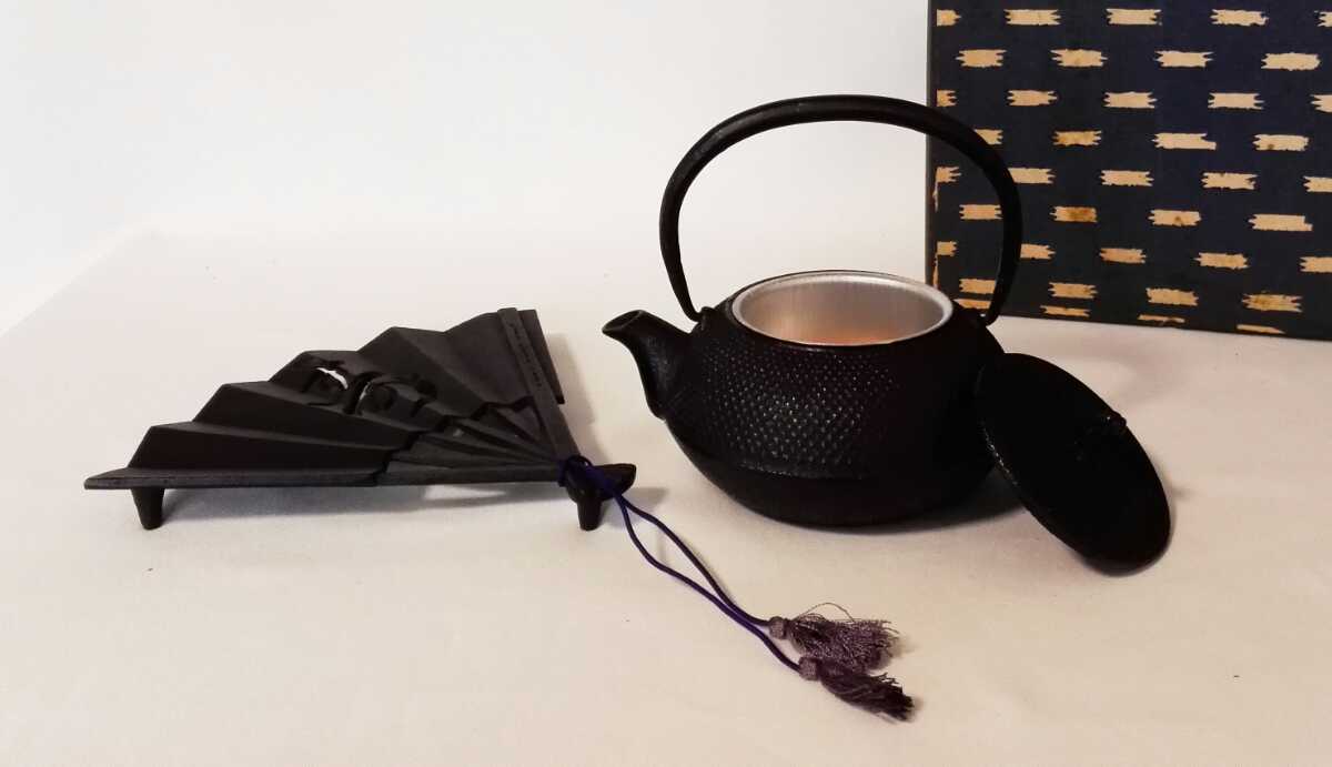 [未使用] 南部鉄器 文秀堂 急須瓶敷セット あられ模様 扇子 ★02V-126の出品になります。