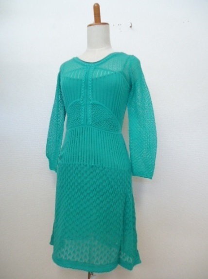 - 【KCM】eti-8-T4★新品★【ETINCELLE/エタンセル】レディース 長袖 ニットワンピース サイズ T4(L相当) グリーン系