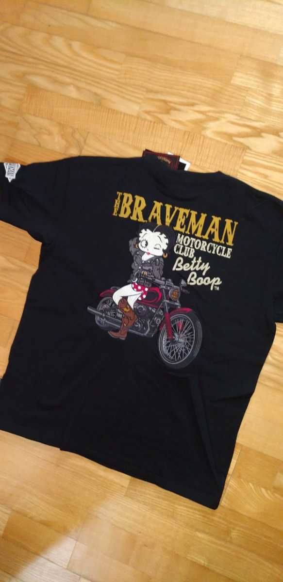 - SALE! 送料込★ベティ The BRAVE MAN×Betty-Boop BBB-2211 ベティちゃん 天竺半袖Tシャツ 刺繍 バイク ブラック XL