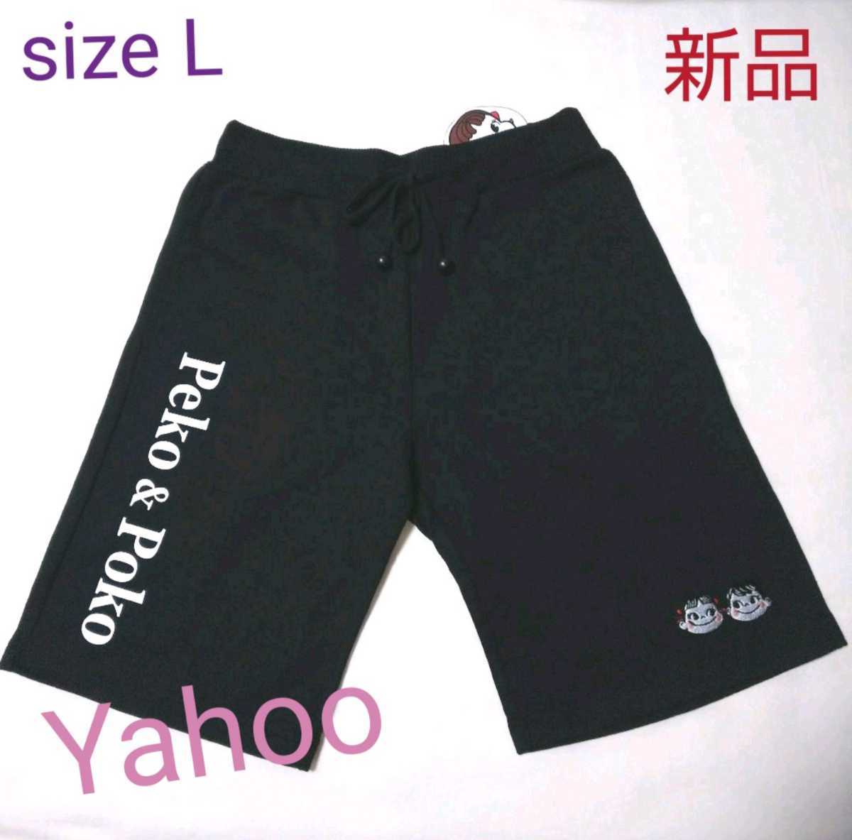 - ペコちゃん ハーフパンツ 刺繍ブラック Lsize【新品・タグ付き】