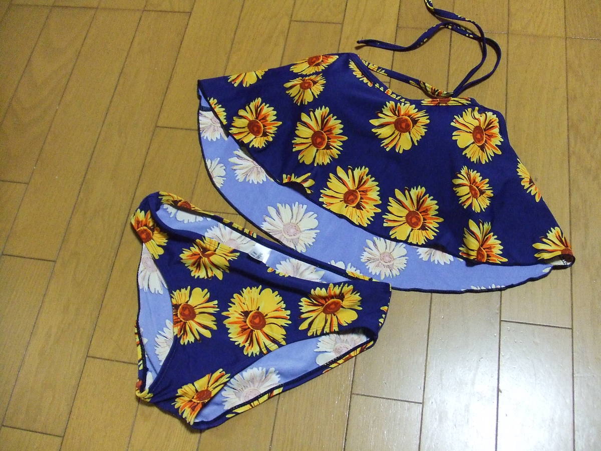 - ブルー系 ★ 花柄 レディース水着 セパレート タンキニ サイズL B71