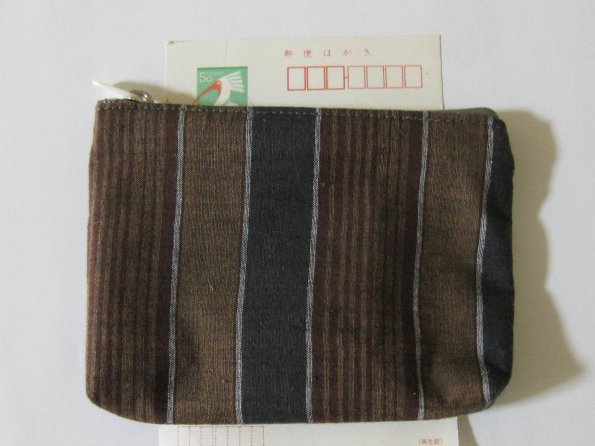 - 手作り 着物リメイク ポーチ 変則ライン 絣 パッチ柄 模様 古布 かすり レトロ ハンドメイド 格安 財布 小物 充電器 男女 兼用 可愛 お洒落