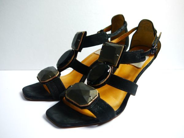 - 美品 ランバンオンブルー LANVIN en Bleu サンダル 黒 22.0cm 日本製 R999-85