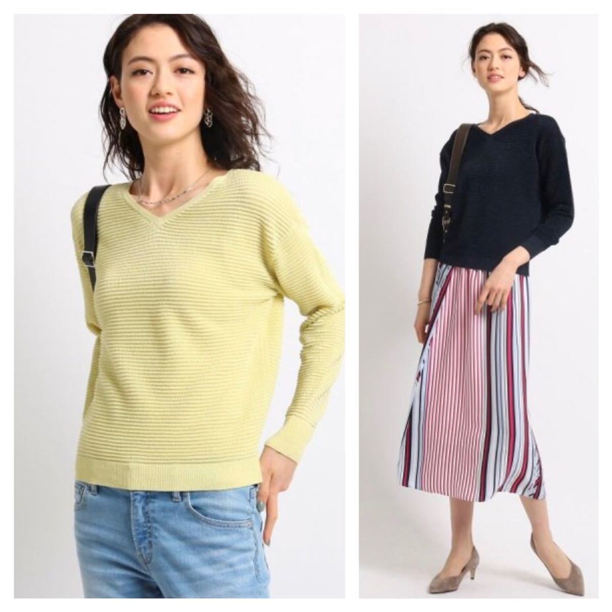 - INDIVIインディヴィ◆ハンドウォッシュ コットン混シャイニーVネックニット 38 イエロー◆セーター トップス アンタイトル リフレクト