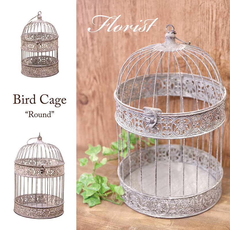 > インテリア鳥かご ML 2サイズセット バードケージ (ラウンド グレー) フローリスト 店舗 装飾 鳥籠 観葉植物 西海岸風 アメリカン雑貨