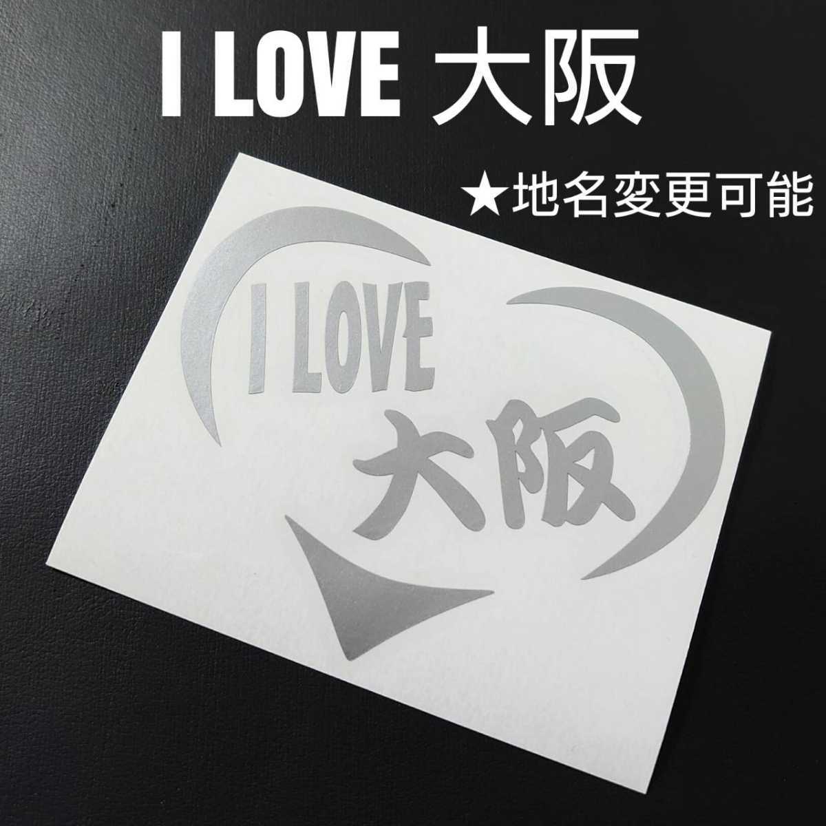 - 【I LOVE 大阪】ハートフレームカッティングステッカー(シルバー)