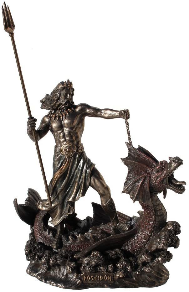 - 三叉の矛を持って、海馬に立つポセイドン ブロンズ風彫像 古代ギリシャ 海と地震を司る神 彫刻(輸入品
