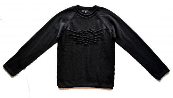 > ★エンポリオアルマーニ★ 人気の黒色、胸にイーグルのカッコいいデザイン 色気のある男が似合うクールネックセーターSM