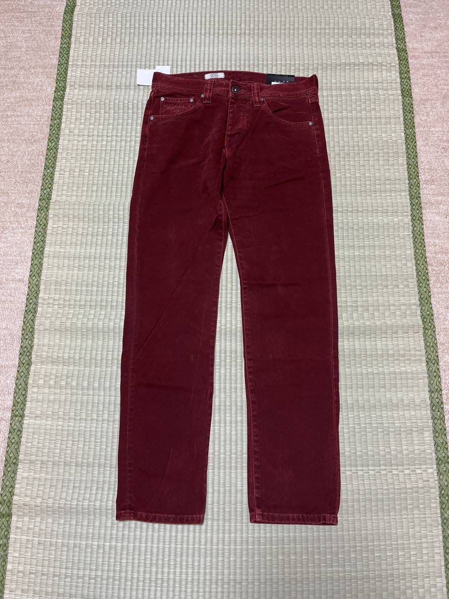 > pepe jeans LONDON W31 SLIM FIT LOW WAIST SLIM LEG 新品未使用 16800円 デニム カラージーンズ ワインレッド系 革パッチ ボタンフライ