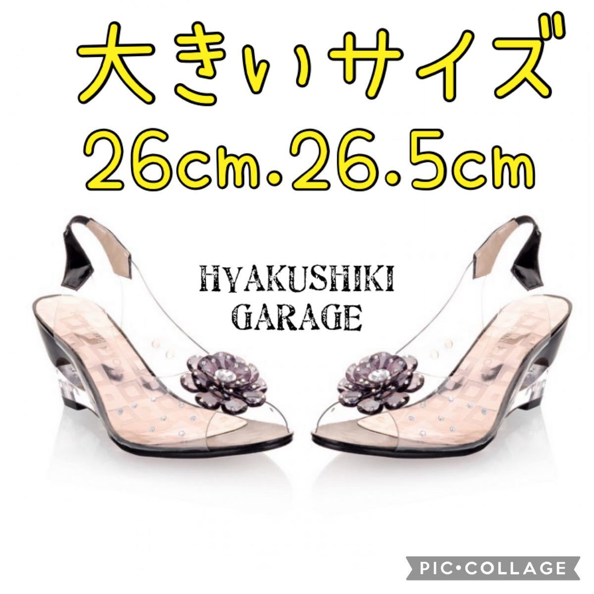 - 残り1足!大きいサイズ 26cm B25-13 フラワーチャームサンダルブラックレディース スケルトン シースルー クリアブラック