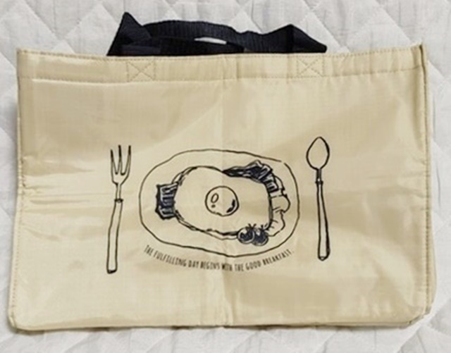 - バッグ エコバッグ レジカゴ 保温・保冷 巾着タイプ オフホワイト×紺色