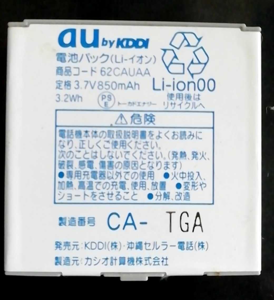 - 【中古】au純正62CAUAA電池パックバッテリー【充電確認済】対応機種(参考)W62CA/CA002