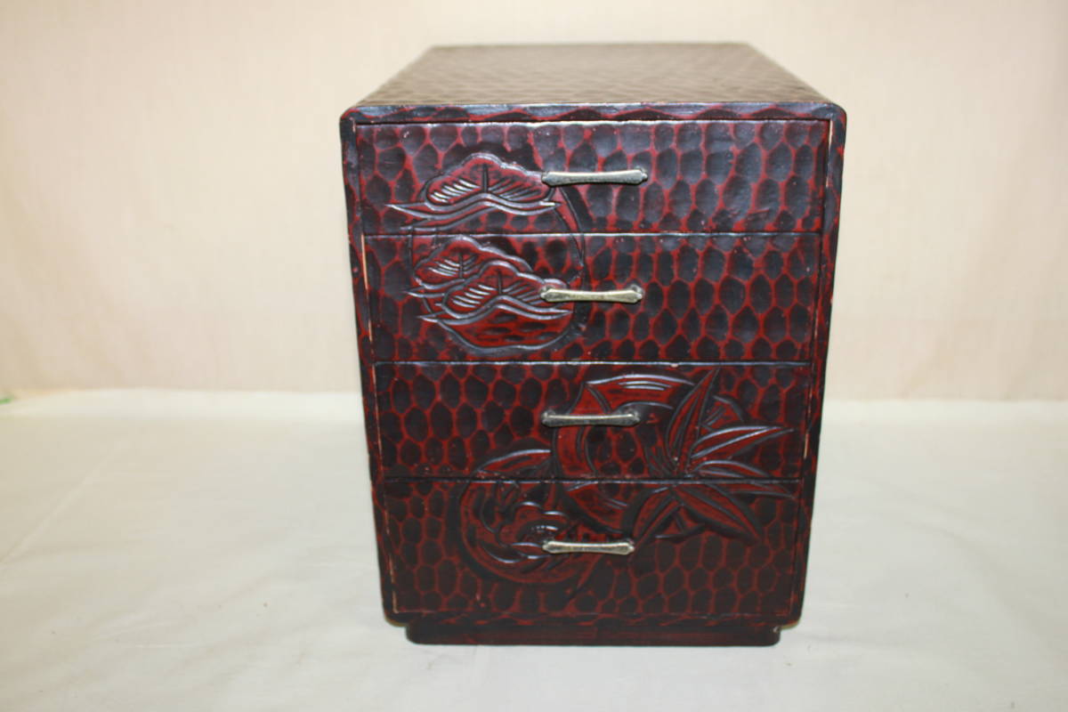 - ★鎌倉彫★4段小引き出し 小箪笥 小物入れ★松竹梅図★