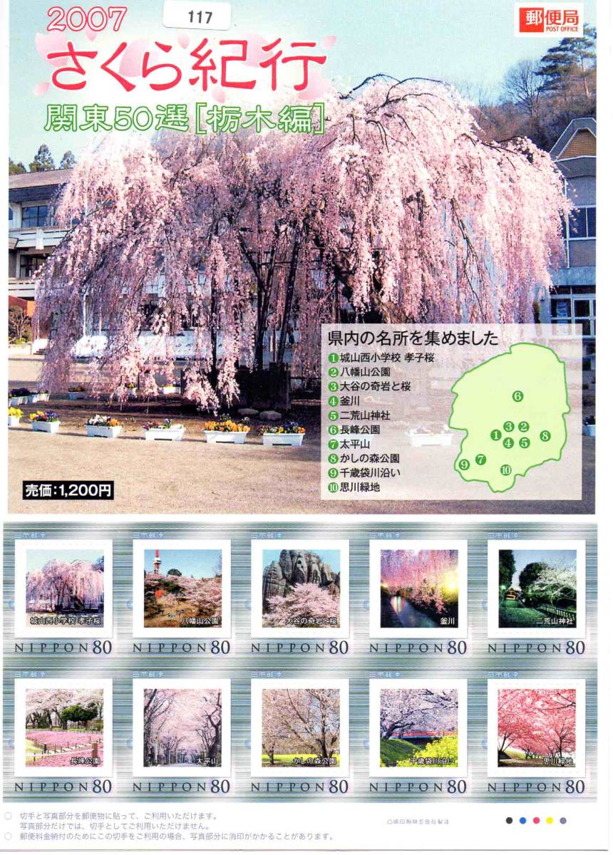 - 117★フレーム切手 2007 さくら紀行 関東50選 栃木編 80円x10★