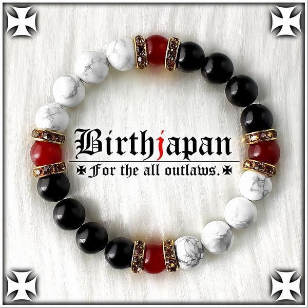 - 10mmロンデル×オニキスハウライトカーネリアン数珠ブレスレット