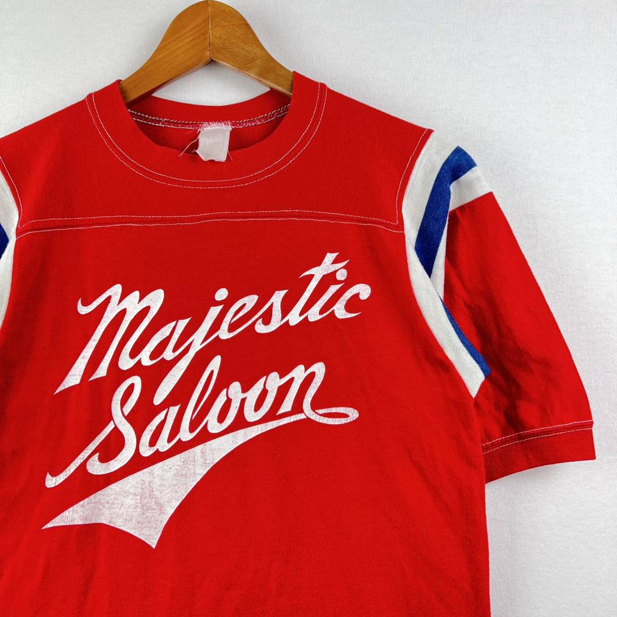 > ビンテージ 80s【majestic saloon】フットボール Tシャツ USA製 M アメカジ 古着 70s ランタグ アメフト 企業 カレッジロゴ トリコ Y2K 90s