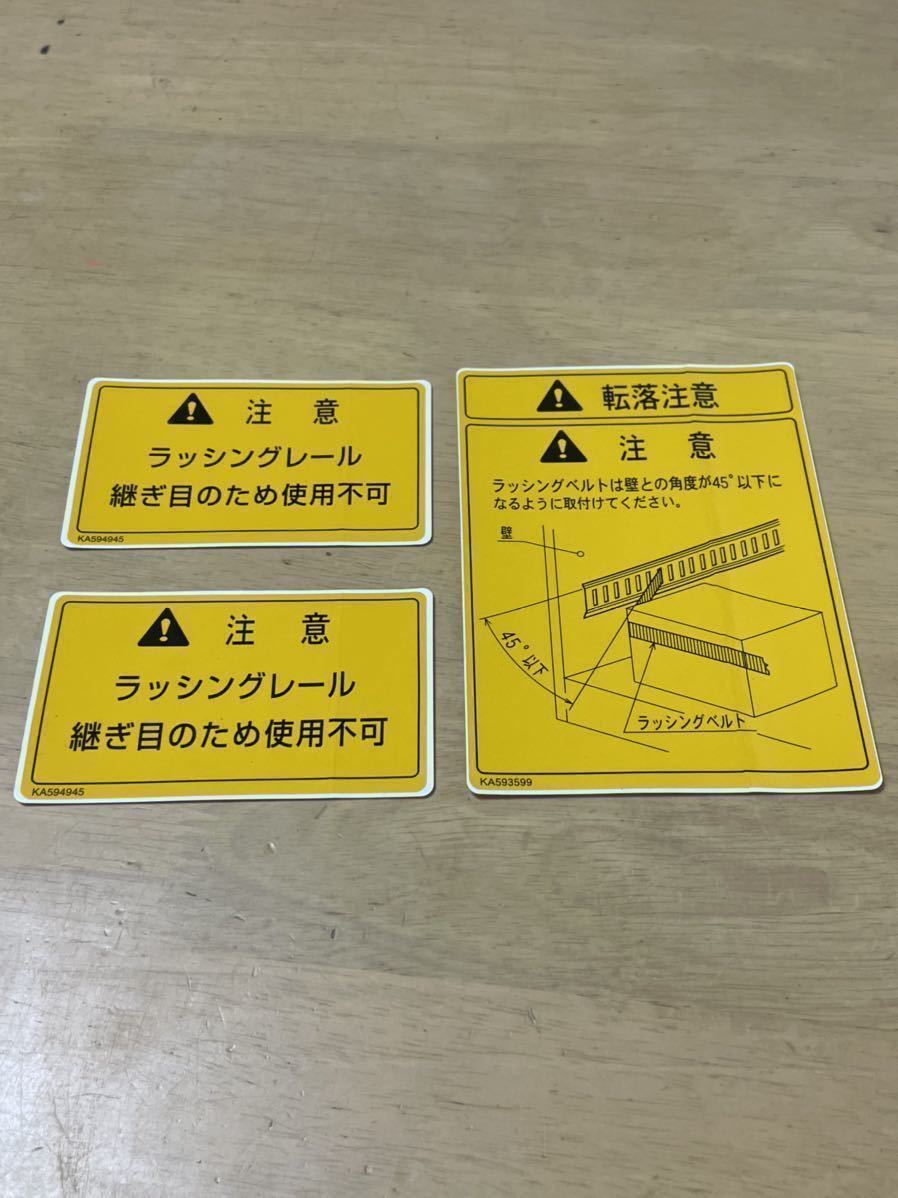 > ラッシング レール 警告 注意 点検 庫内 ステッカー 3枚 カッティング シール ジャンク トラック ウィング 大型 中型 小型