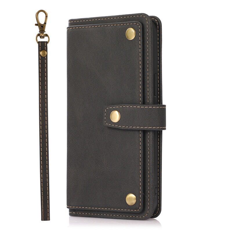 - iPhone 13 pro max レザーケース iPhone13 pro max ショルダーケース iPhone13 pro max カバー 手帳型 カード収納 ストラップ付き ブラック