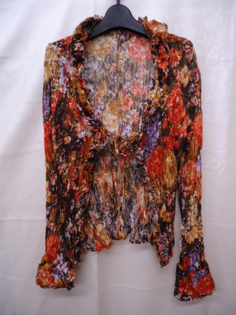 > 【KCM】kof-175★新品★【h bis/アッシュビス】シワ加工 総柄 前開き カーディガン オレンジ系他 サイズ 40 レディース