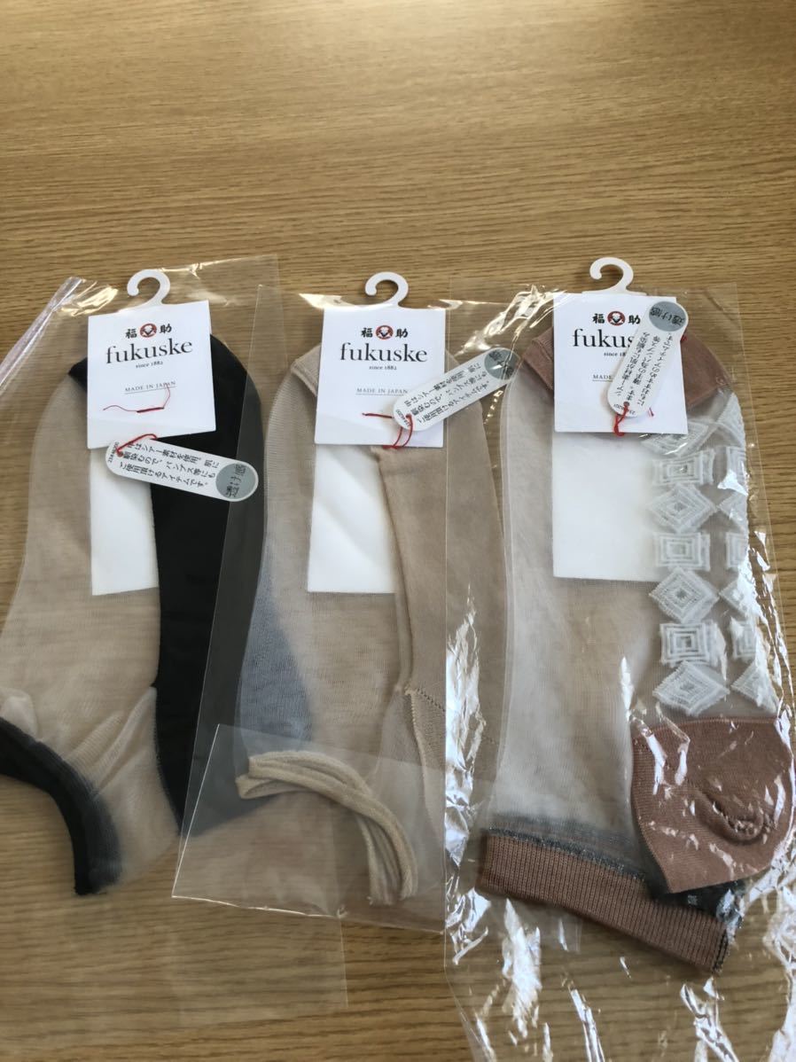 - 福助 シースルー ソックス 3色 3足セット 新品