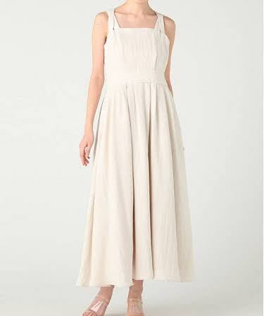 - LAGUNAMOON バッククロスタックフレアーワンピース ベージュ ロングワンピース マキシワンピース ワンピース ワンピ