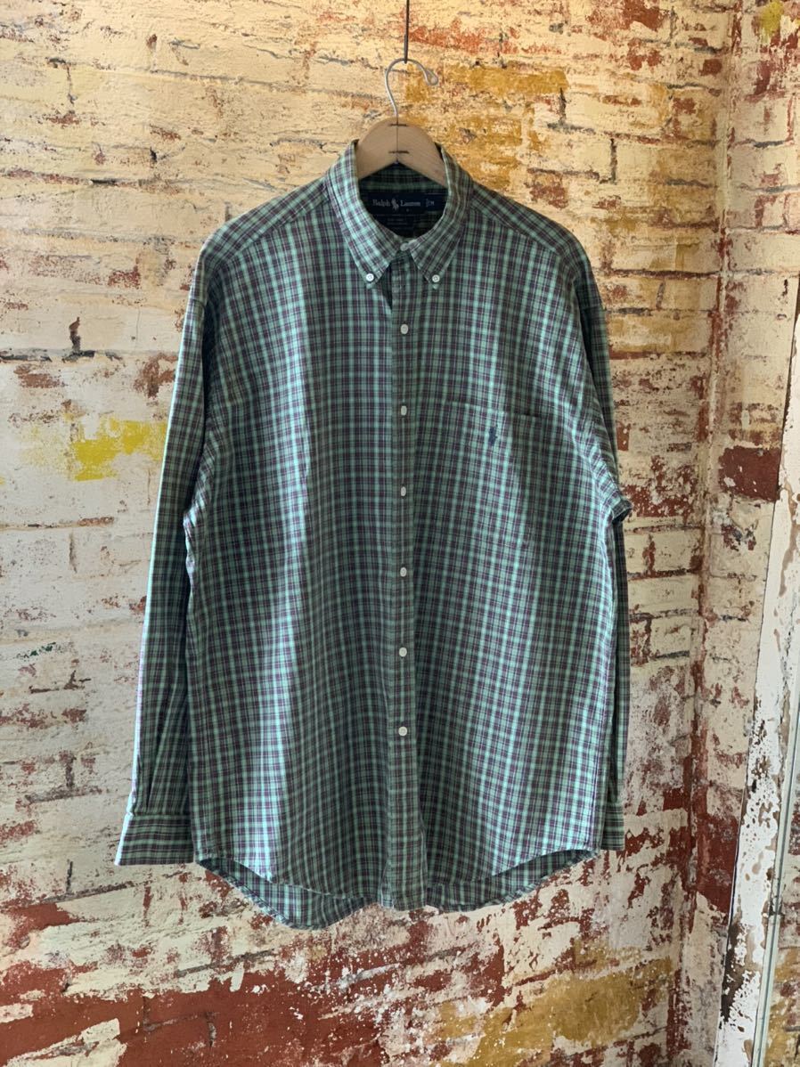 - 90s Ralph Lauren PLAID B.D.SHIRT BIG SHIRT ラルフローレン チェックシャツ ボタンダウンシャツ ビッグシャツ アメトラ 80s 送料無料