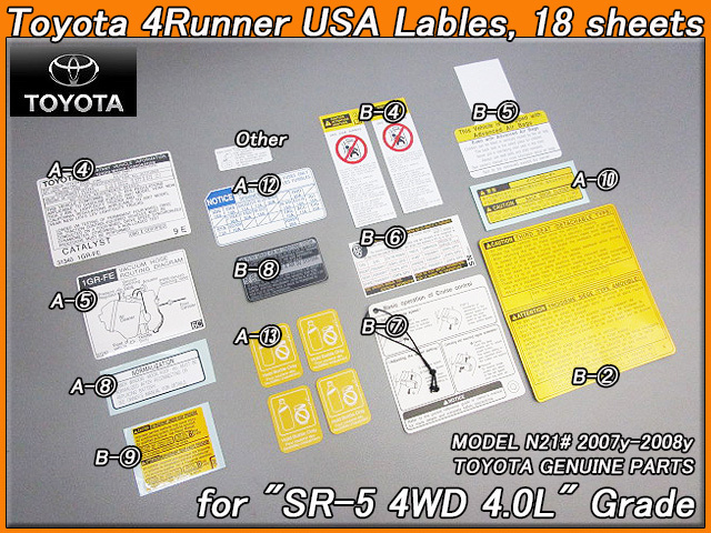 - サーフN21/TOYOTA/トヨタ4RUNNER純正USラベル18枚(SR5/4WD/07-08yモデル)/USDM北米仕様4ランナーN210ハイラックスN215コーションステッカー