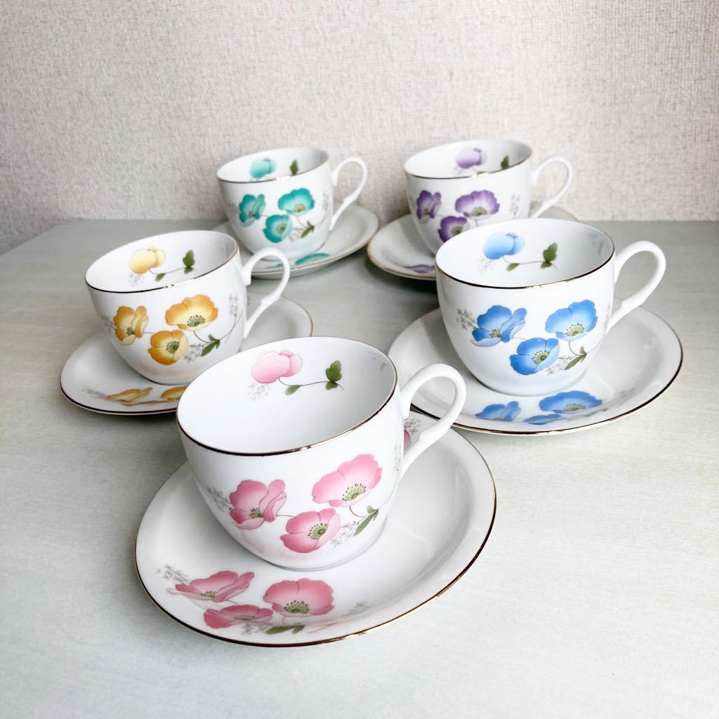 - e08)昇龍 花柄 華 コーヒーカップ ティーカップ カップ&ソーサー 5客セット 花絵五客碗皿揃 客用 茶器
