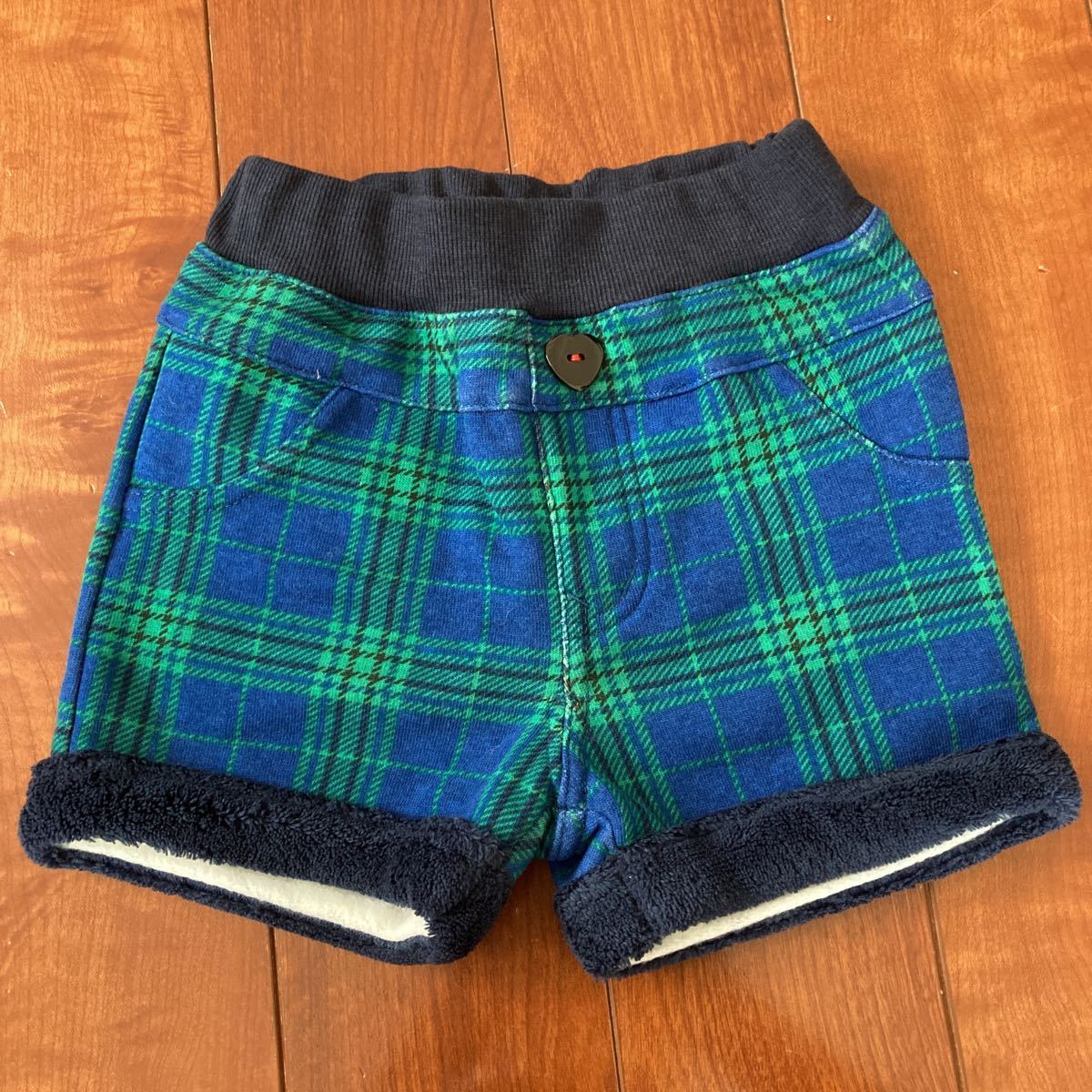 - おしゃれ!裏起毛・チェック×グリーン系・ショートパンツ・90